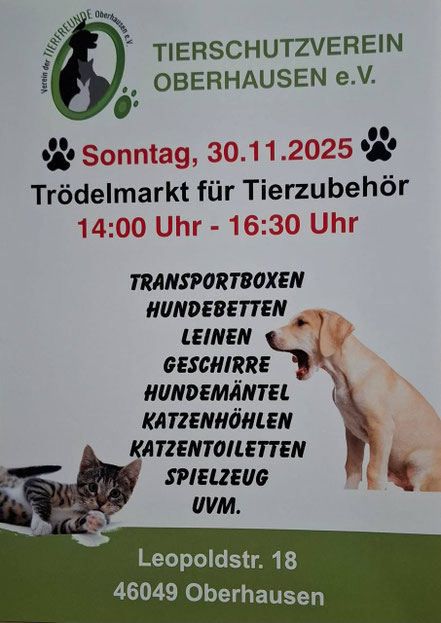 Der Tierschutzverein Oberhausen lädt zum Sonderverkauf ein!